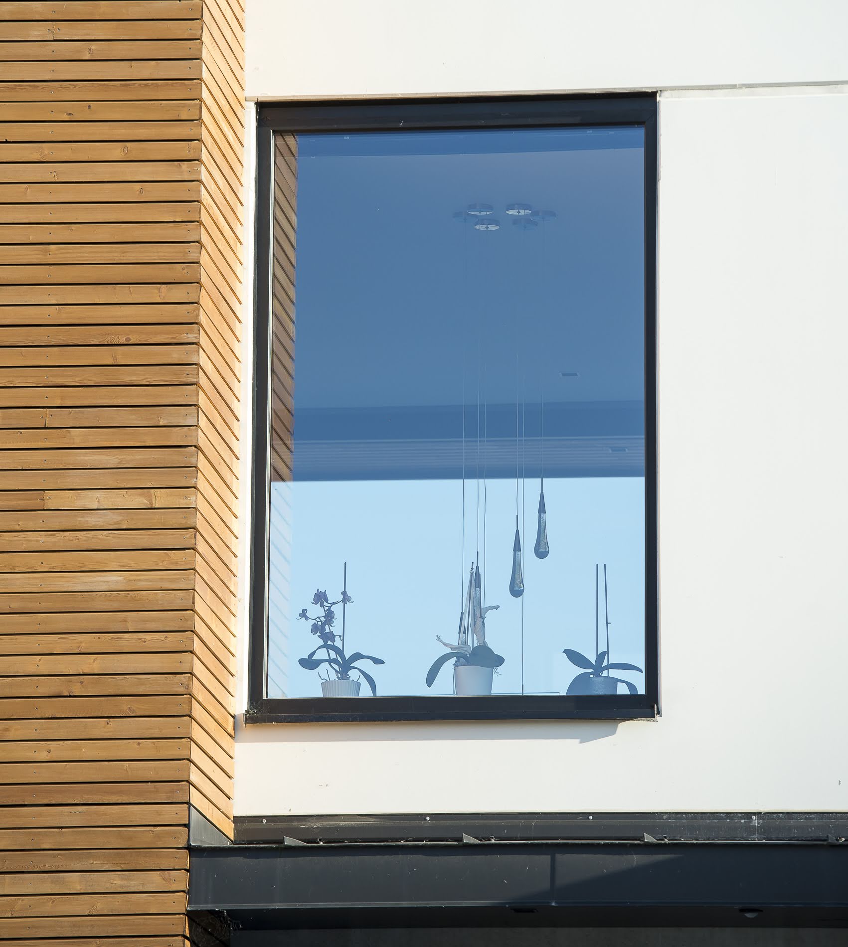 - Baie vitrée fixe mixte bois/alu -Permet un look contemporain à l’extérieur (sans entretien) et un côté très naturel et chaleureux pour la partie en bois intérieur.