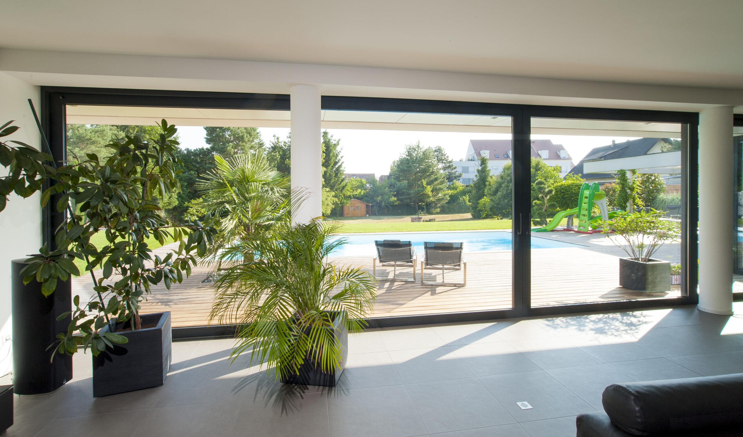 Réalisation complète des menuiseries extérieures pour une maison d’exception en Nord Alsace. Pose de fenêtres, portes, baies coulissantes et occultations alliant performance et esthétisme. Un projet haut de gamme adapté aux exigences architecturales.